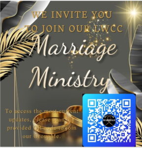 The ministry plans to hold in person and/or online Marriage Ministry Meetings; workshops; seminars designed to equip and enrich the lives of married families. The ministry will provide resource materials as it becomes available to tackle a range of topics that married couples and engaged couples may experience. In addition, the ministry will work in conjunction with other LWCC church ministries to sponsor additional events pertaining to bringing families together. All meetings and events will be in line with LWCC church calendar.