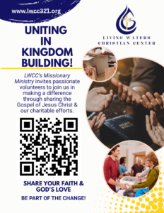 Living Waters Christian Center, Christian Education Ministry provides instruction, support, guidance, and structure to all ministries at the church. This ministry assists the Sunday School Superintendent with planning annual church worship experiences for religious holidays and special worship services.